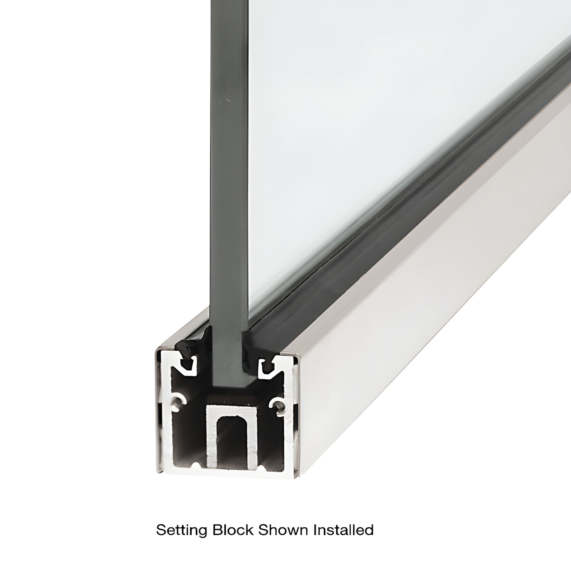 CRL Aluminum Setting Blocks (SKU: UCSB4) with neoprene provide a durable, rigid glass support for the bottom of sidelite rails and U-channel systems with roll-in top load gaskets. These setting blocks are precision-sized to give the recommended 9/16" (14.3 mm) glass coverage and protect the glass edge during installation.