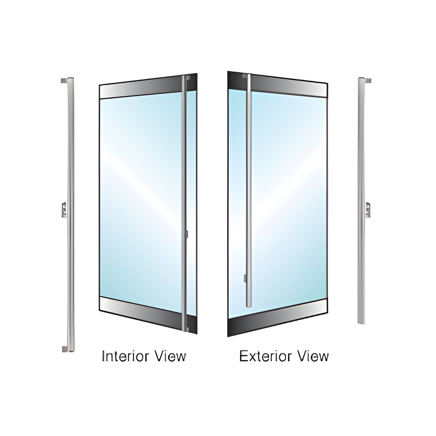 Custom fabricated to complement Panic, Deadbolt, or Electronic Egress Control Handles, these handles are suitable for both interior and exterior tempered glass doors measuring 1/2" or 3/4".