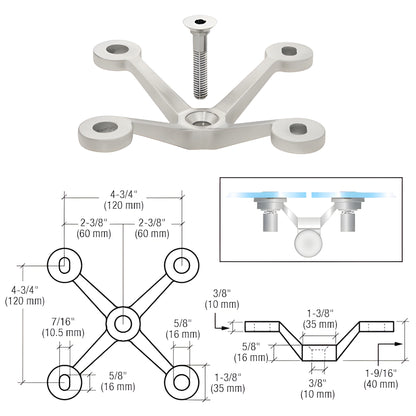CRL Brushed Stainless Four Arm Spider Fitting 'V' Post Mount