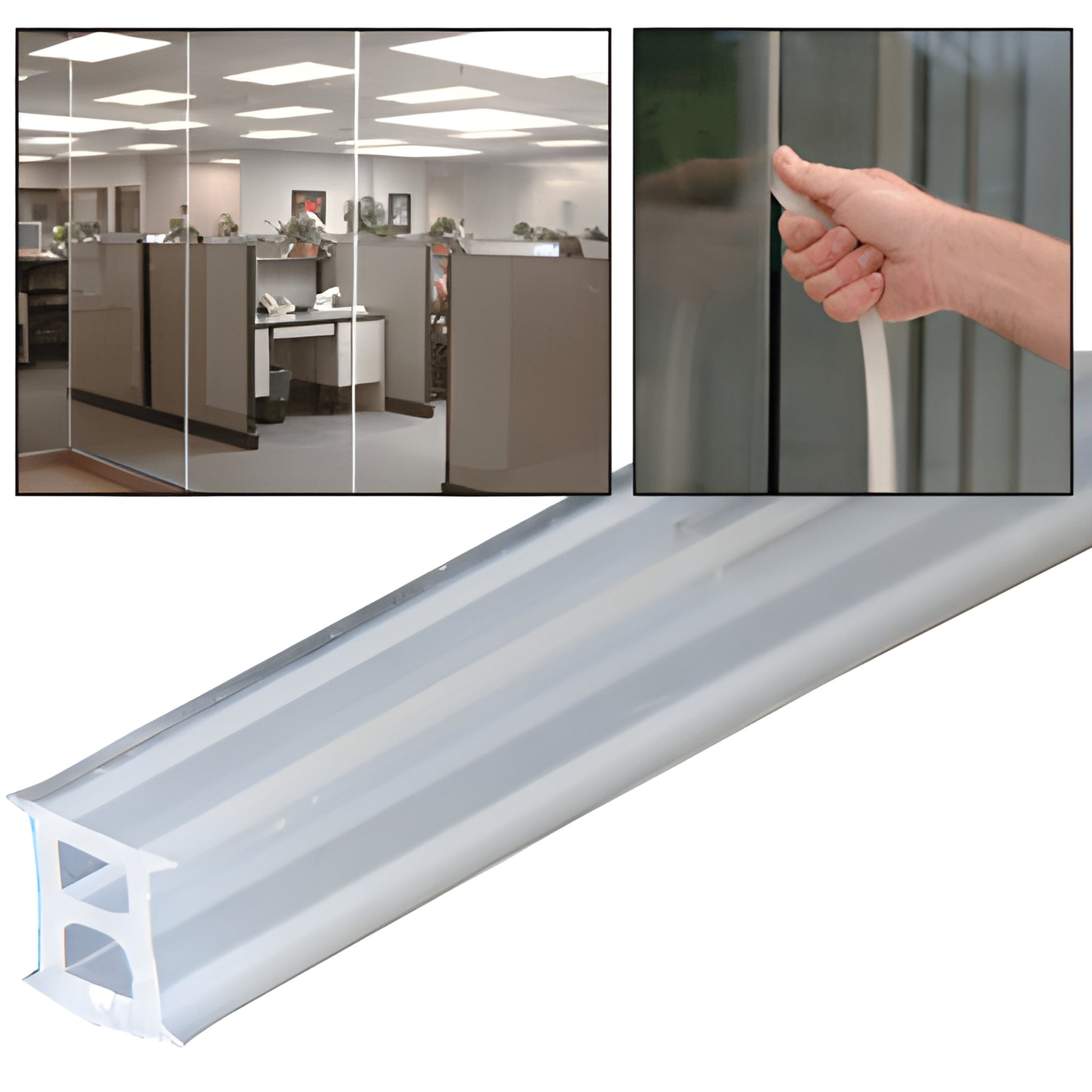 CRL EZ GLAZE Soundstrip (SKU: EZ38XC) is an extruded silicone gasket engineered to reduce sound, smoke, and odors at glass-to-glass (butt) joints. Commonly specified for interior office glass partitions and storefronts where acoustic performance and clean aesthetics matter, EZ GLAZE provides an effective acoustic glass seal without wet glazing. Unlike liquid silicone sealants, it installs quickly with less labor—no masking, no cure time, no bubbles—and cuts easily. Installable from one side, it will not adversely affect laminated glass. Recommended gap between glass lites: 1/4" (6 mm). Rolls are 100' (30.5 m) in length and available in clear or black for 1/4" (6 mm), 3/8" (10 mm), and 1/2" (12 mm) glass.
