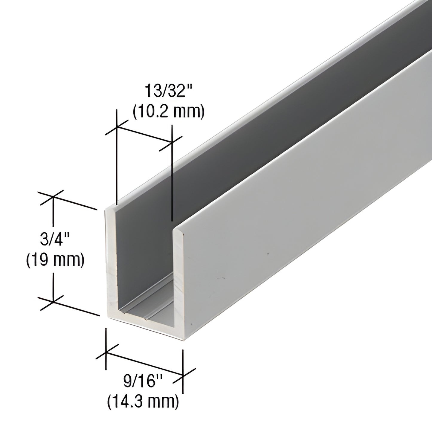CRL Satin Anodized Frameless Shower Door Aluminum Deep U-Channel for 3/8" Thick Glass - 144"