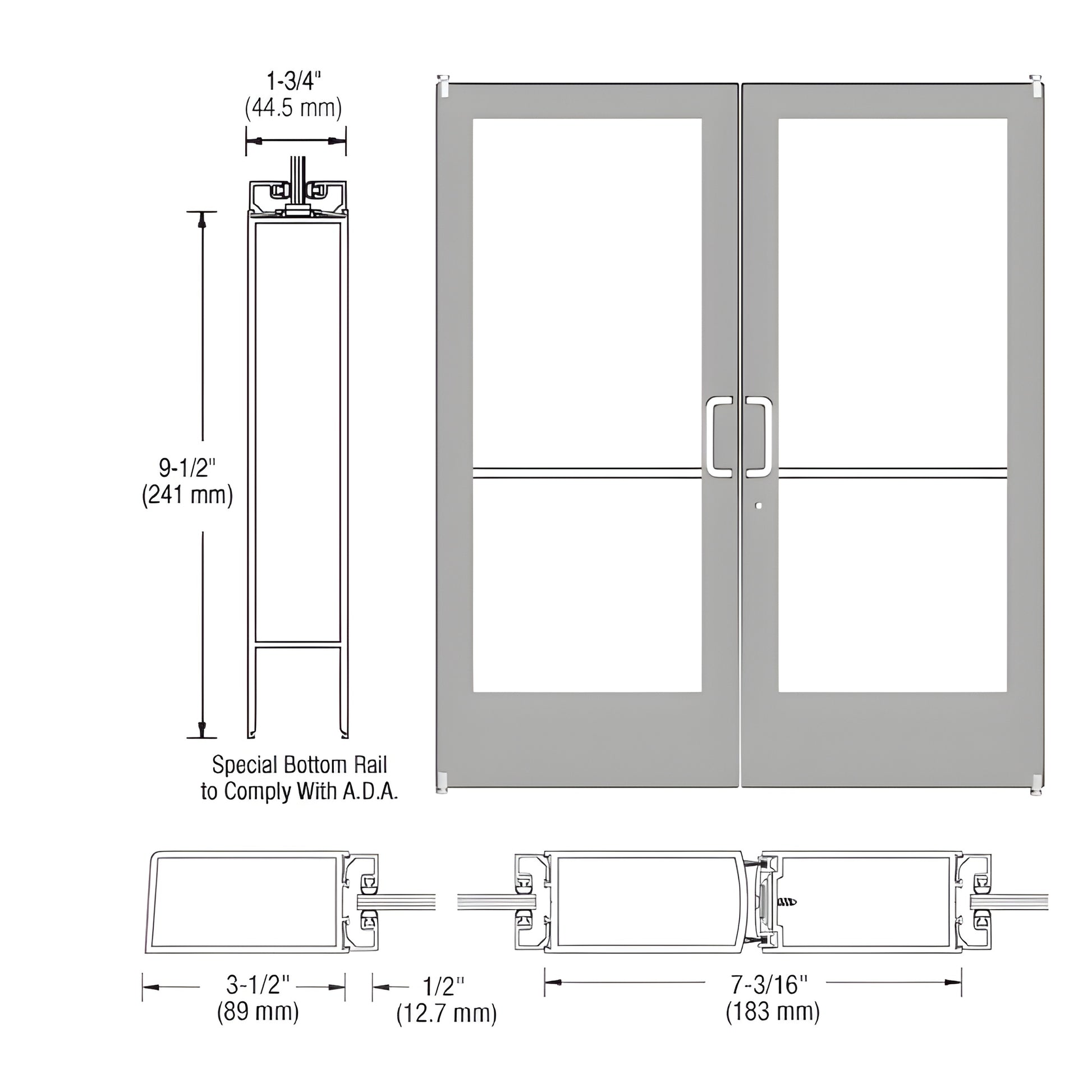 - 9-1/2" (241 mm) bottom rail — ADA compliant installation